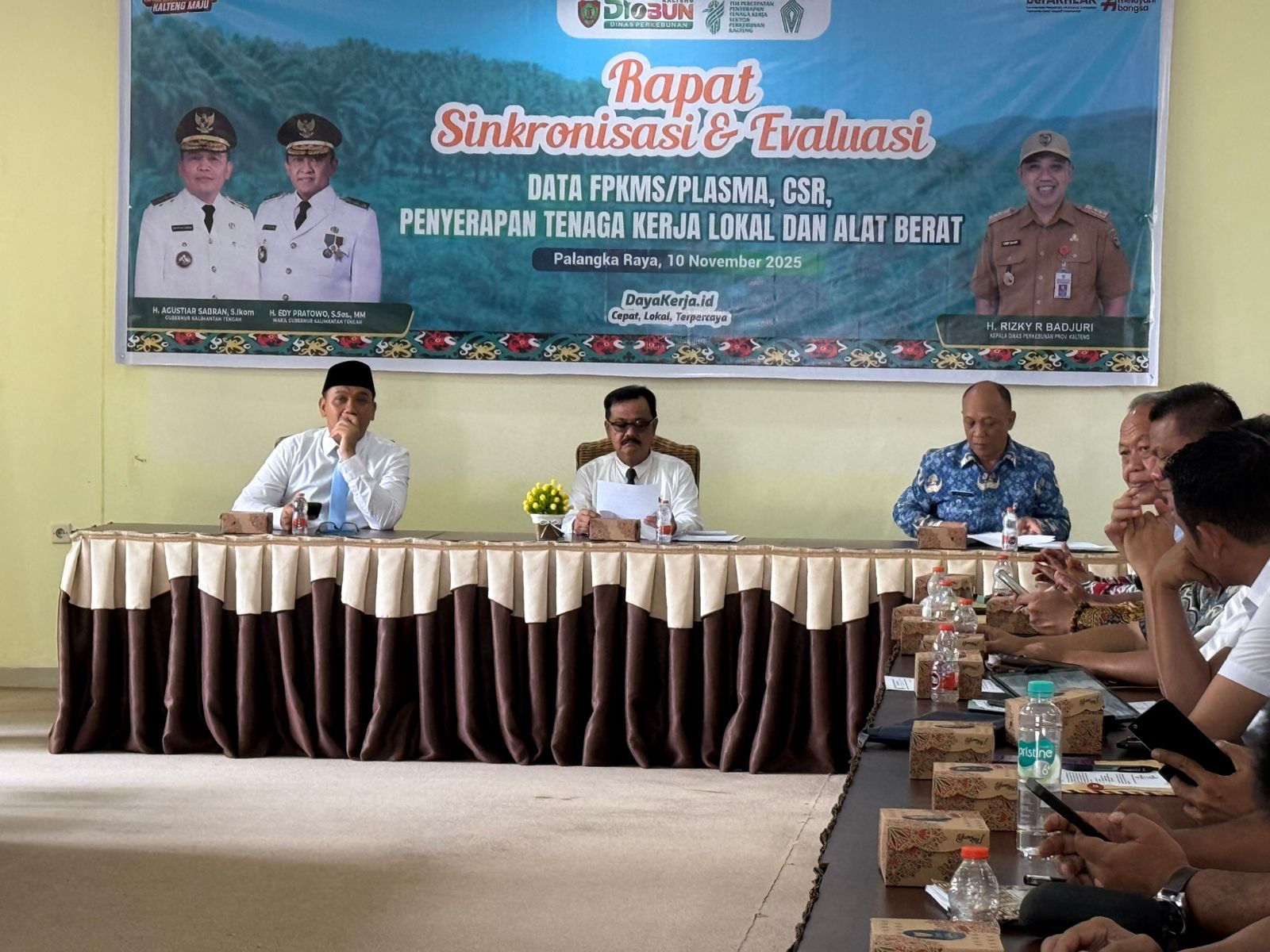 Rapat Sinkronisasi dan Evaluasi Data FPKMS/Plasma, CSR, Penyerapan Tenaga Kerja Lokal, dan Alat Berat. Kegiatan bertempat di Aula Dinas Perkebunan Provinsi Kalimantan Tengah, Senin, 10 November 2025.